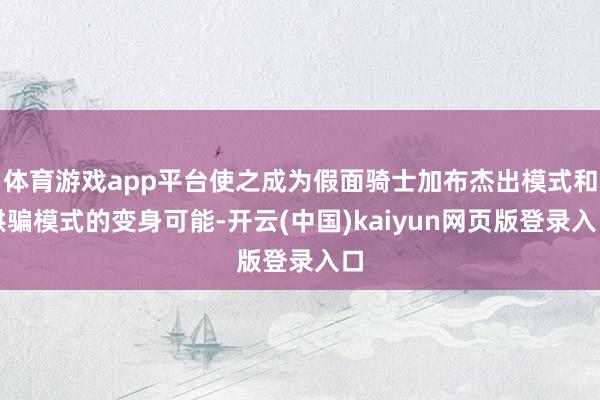 假面骑士加布筹商此次推出的最终花样方面的变身说念具体育游戏app平台,具体的详备官方设定,此次也一并有所公开和清楚,此次的最终花样合座的预备上也曾很专门旨真谛的,玩法看着寥落的有性情,本次的饱藏罐子设定上是逼近100个饱藏的力量出身出来的变身说念具,其具体的才调方面还挺专门旨真谛的。 通过叔公丹特·斯托马克的悉力,奏效配置出来的,针对生真是强化说念具。戒备这里官方在形色杰出花样的时辰,并莫得说是最终最强,只说了是强化,是以表面上来说官方可能愈加偏向于哄骗花样是最终花样。 通过收纳家族饱藏零食来