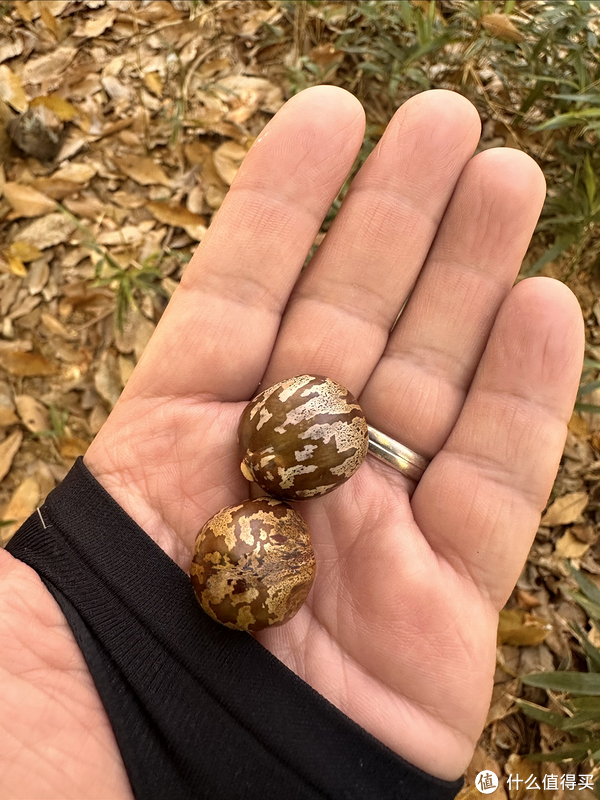 还捡到了橡胶树的种子,圆圆的像一颗鹌鹑蛋