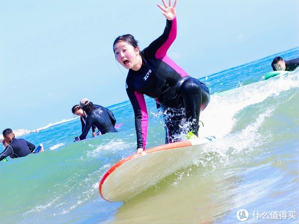 一启动,未免有些弥留。经由几次失败反复摔打,终于好多了。当信得过站在海潮上时,那种与海潮共舞的快感霎时冲淡了怯怯。