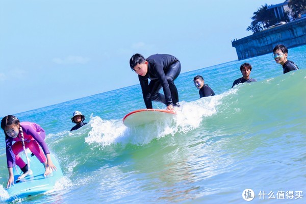 咱们来到了日月湾以后,在专科教育的指示下,穿上了浮水衣,踏上了冲浪板。