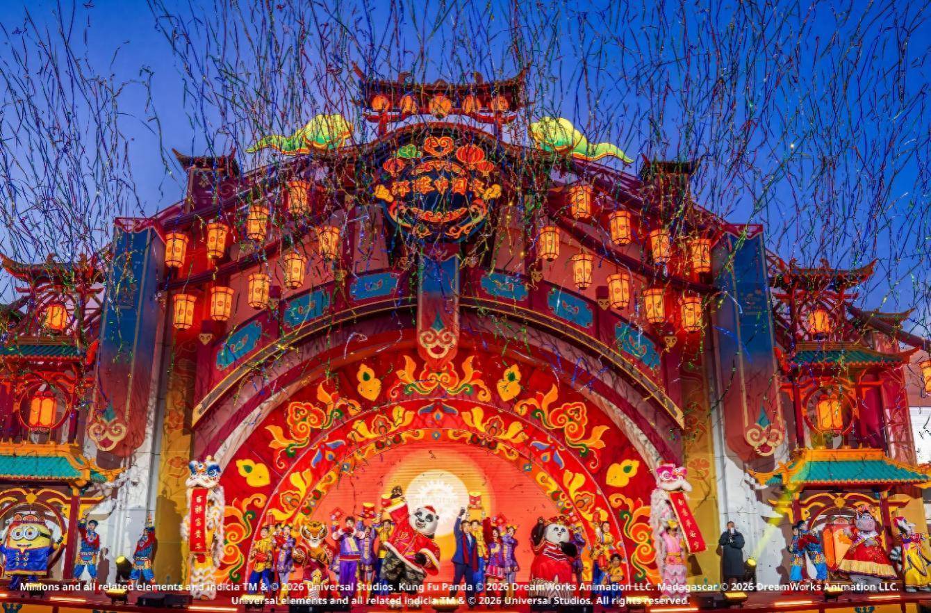 举止时分,备受心思的“各人中国年新春相配上演——团圆啦!”将焕新回想,梦工厂动画《功夫熊猫》中的阿宝、《神偷奶爸》中的小黄东说念主等多位海外IP扮装携手登场,并融入川巨变脸、刀马旦、蹬饱读杂技等传统艺术元素。园区内,新春主题遮挡全面铺陈,地标景不雅“各人绮愿金梅树”升级亮相,通过灯光与音乐营造千里浸式道喜体验。