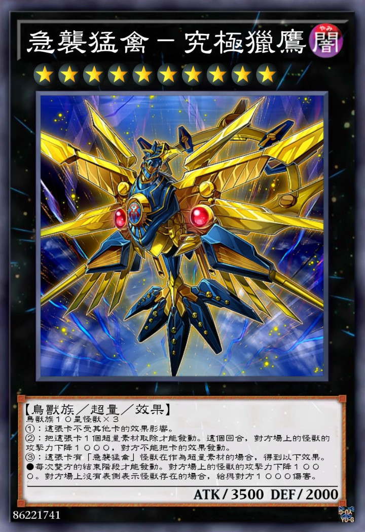 这只怪兽属于急袭猛禽字段的庞杂10星怪兽,属于鸟兽族的超量怪兽,基础流毒力就有3500点的数值,还是算高了。
