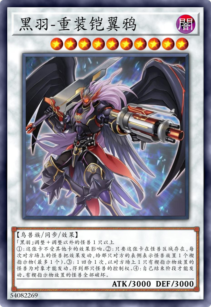 黑羽字段的10星怪兽,天然3000点的流毒力跟守护力并不算高,但是这只怪兽用起来的时辰还得靠成果。这只怪兽的成果,分主动跟被迫两种,主动的成果就是取得对方怪兽限度权,被迫的就出免疫全成果的抗性,还有禁闭遗弃带领物怪兽的才调。