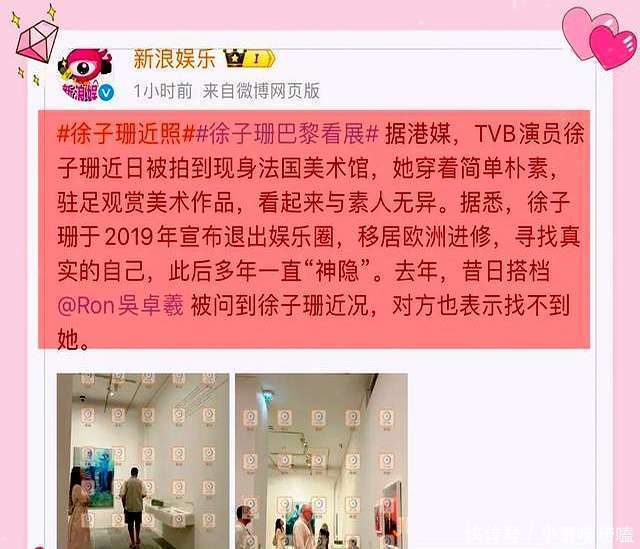 就在寰球纷繁估量她去了那儿,过得如何的时候,一则消息如同坦然湖面进入一颗石子,一会儿激起千层浪:徐子珊在法国好意思术馆被偶遇了!